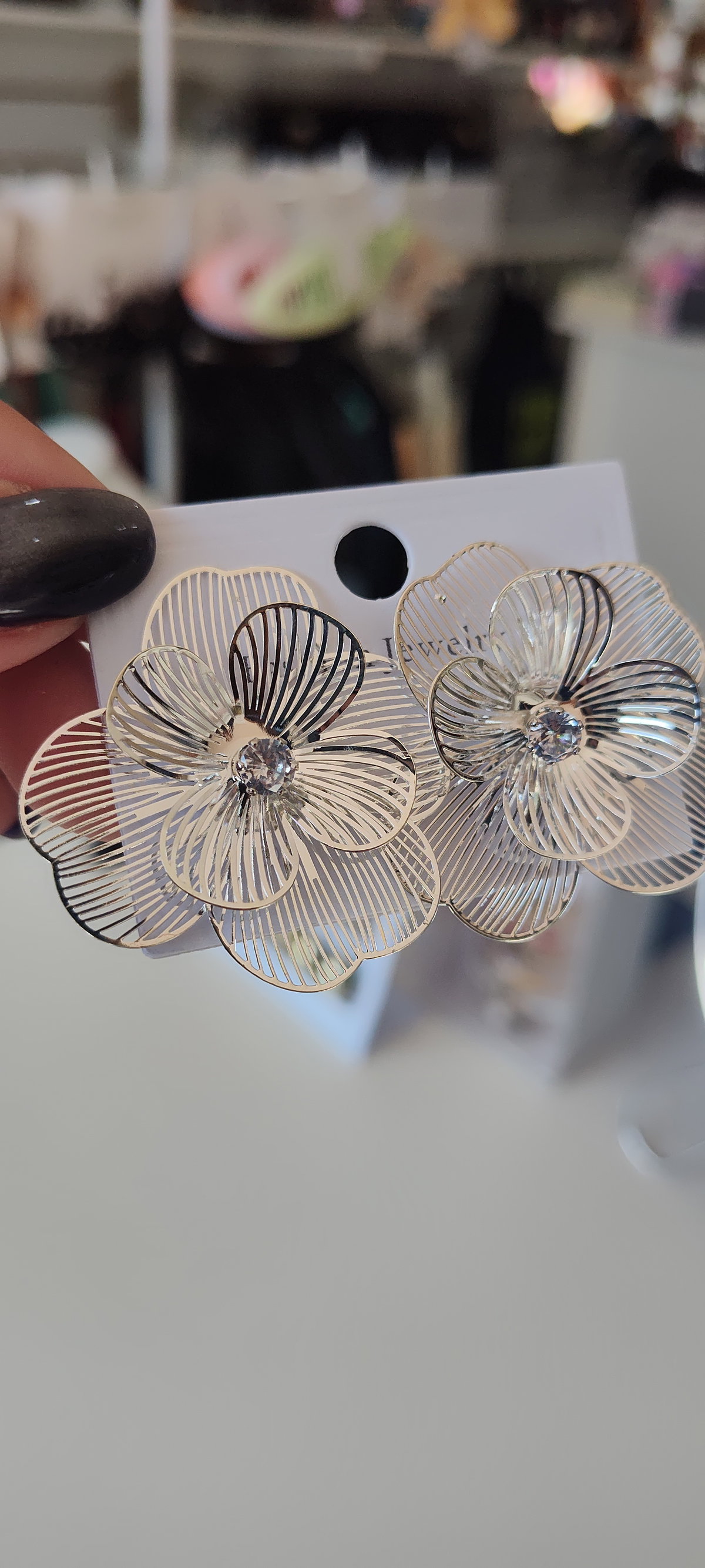 Aros AB Flores, un diseño delicado y femenino en forma de flor calada, con un toque de brillo en el centro que realza su estilo romántico. Livianos y elegantes, ideales para acompañar tanto looks diarios como ocasiones especiales.
