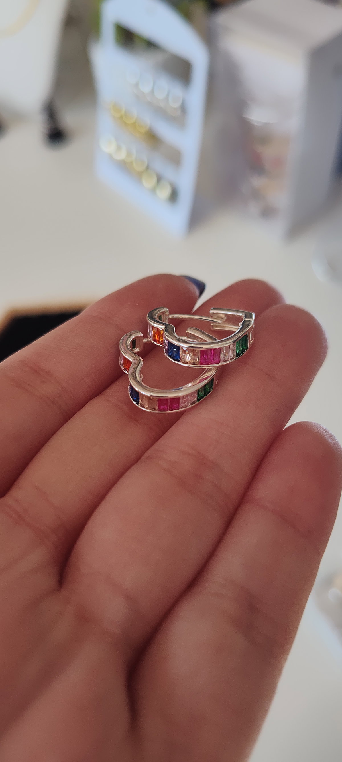 Aros AB Corazón con Strass Colores un diseño delicado y alegre que combina la silueta del corazón con un aro moderno. Su detalle de strass en tonos multicolor aporta brillo y frescura, logrando un accesorio versátil que ilumina cualquier look.