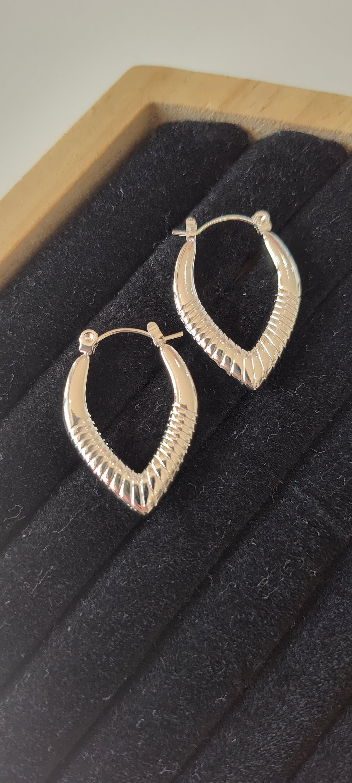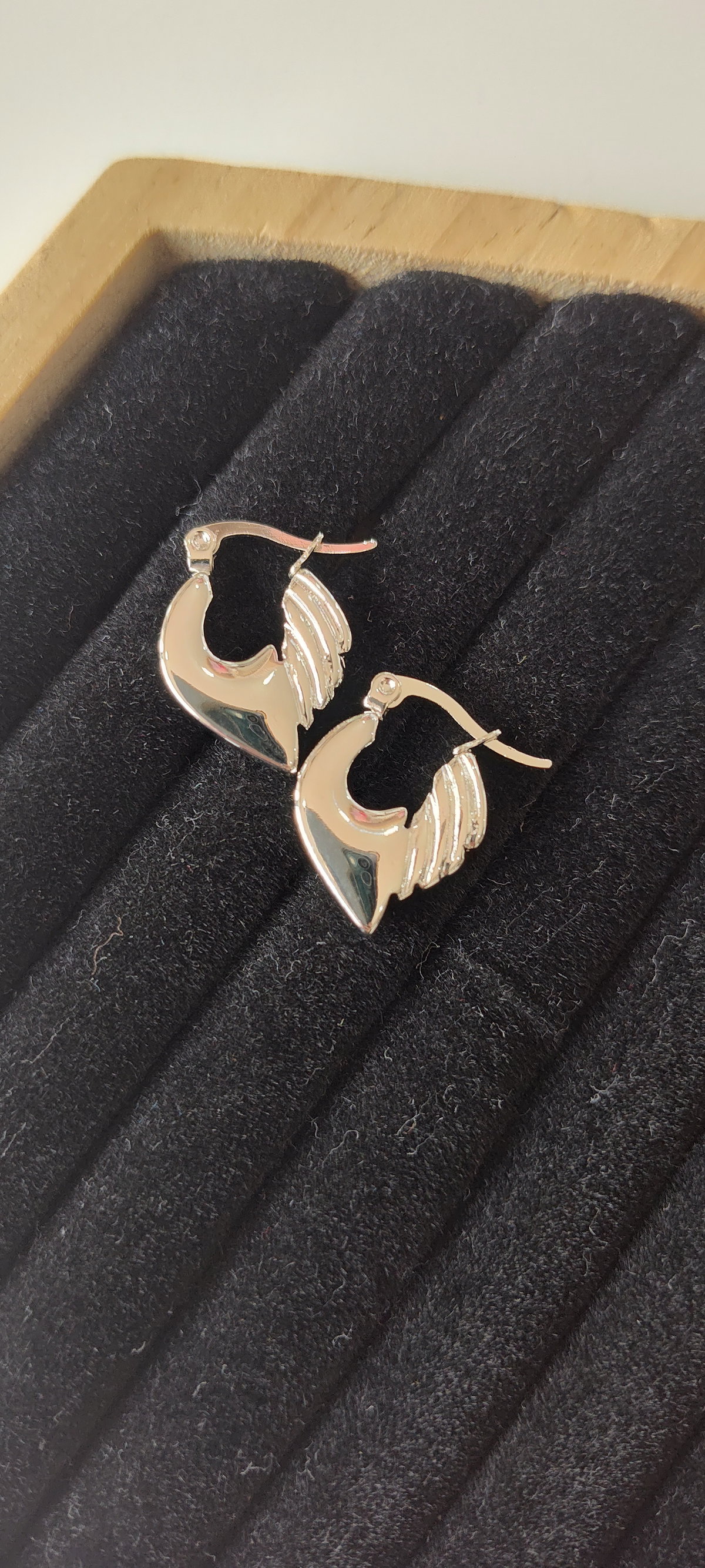 Con un diseño original que recuerda a un ala en movimiento, estas argollas combinan curvas suaves con relieves definidos. Su forma poco convencional las convierte en una pieza única, ideal para quienes buscan destacar con un estilo moderno y audaz.