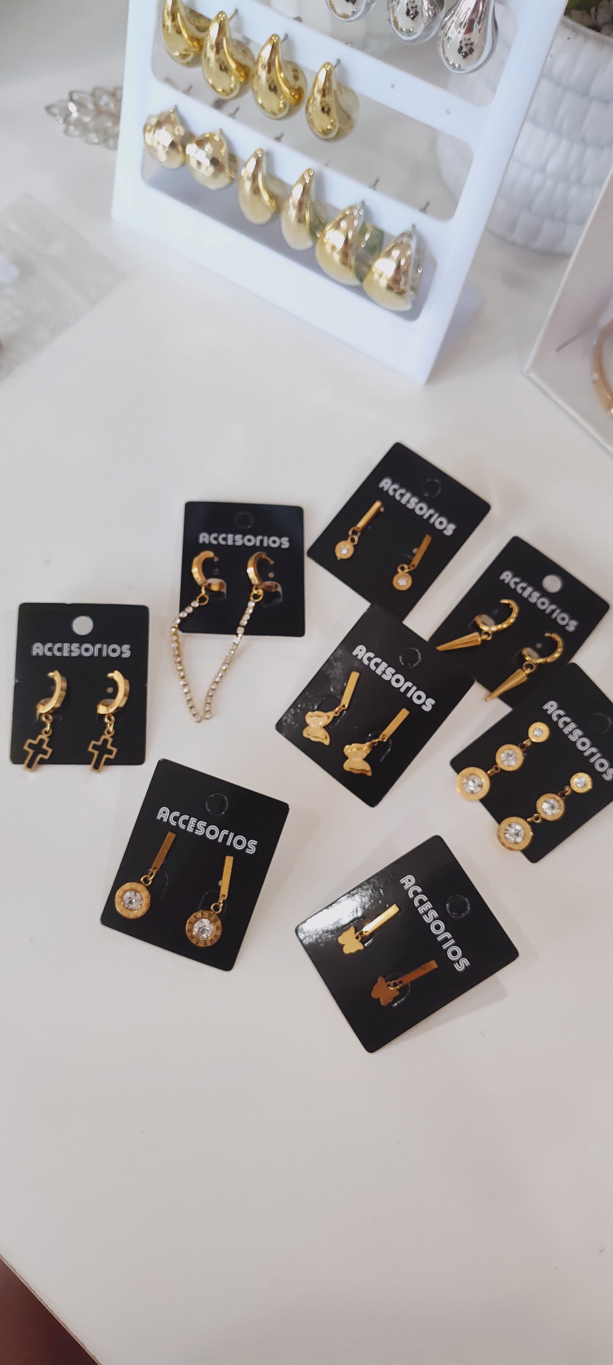Aros argollitas con cruz colgante Argollitas doradas con dije de cruz. Un diseño clásico con estilo moderno, ideales para combinar con otros accesorios.