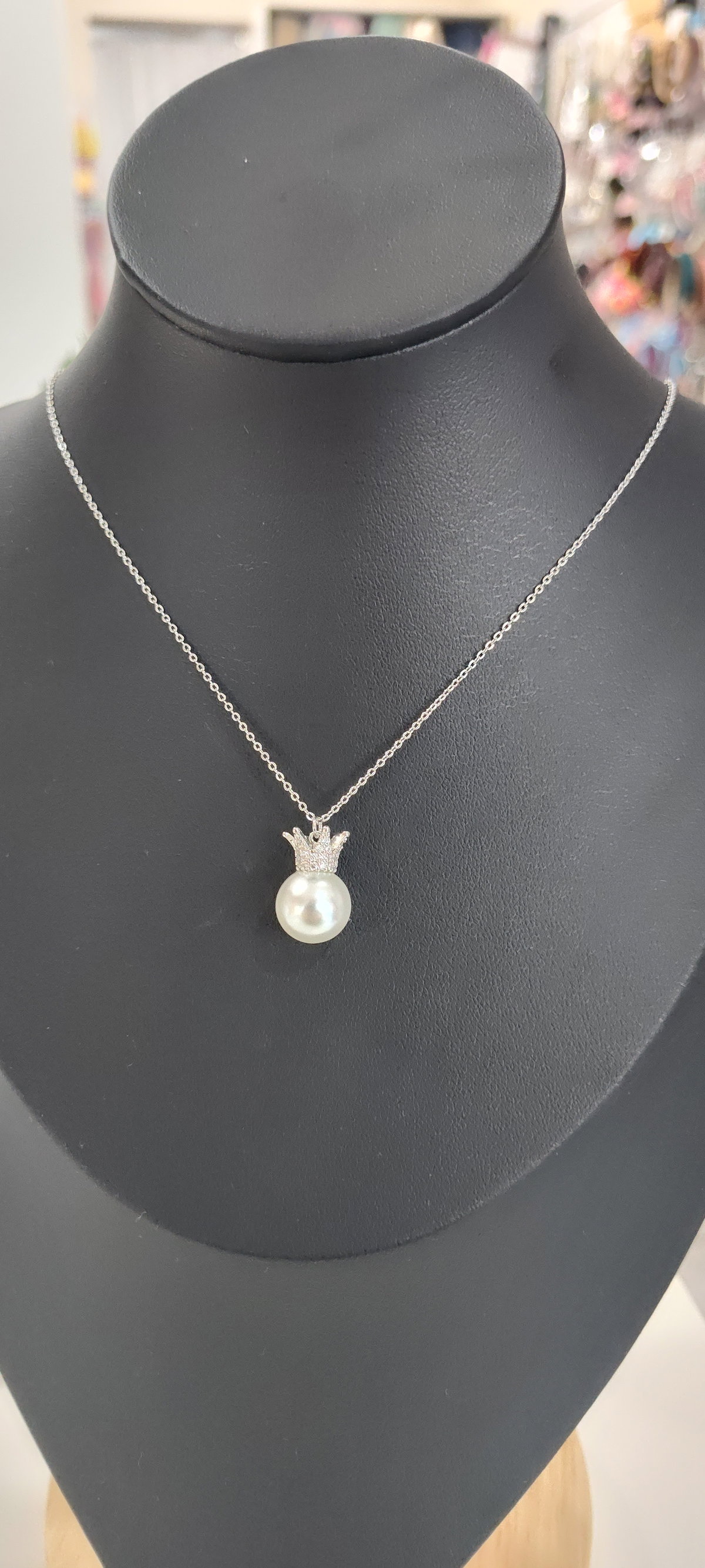 Elegante collar con un distintivo colgante de perla en forma de corona. El diseño combina la pureza clásica de la perla con el simbolismo real de la corona, creando una pieza de joyería versátil y llamativa.