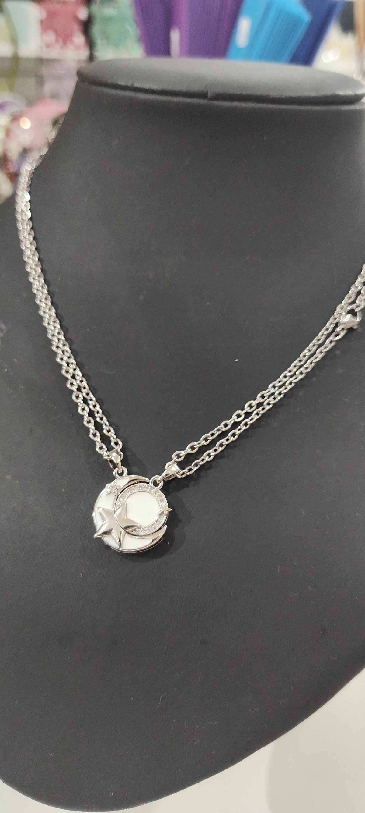Estos collares para compartir traen dijes de luna creciente y estrella que simboliza la belleza y la magia del cielo nocturno. La luna creciente puede representar nuevos comienzos, crecimiento y cambio, mientras que las estrellas simbolizan esperanza, guía e inspiración. También es un símbolo reconocido asociado con el Islam.