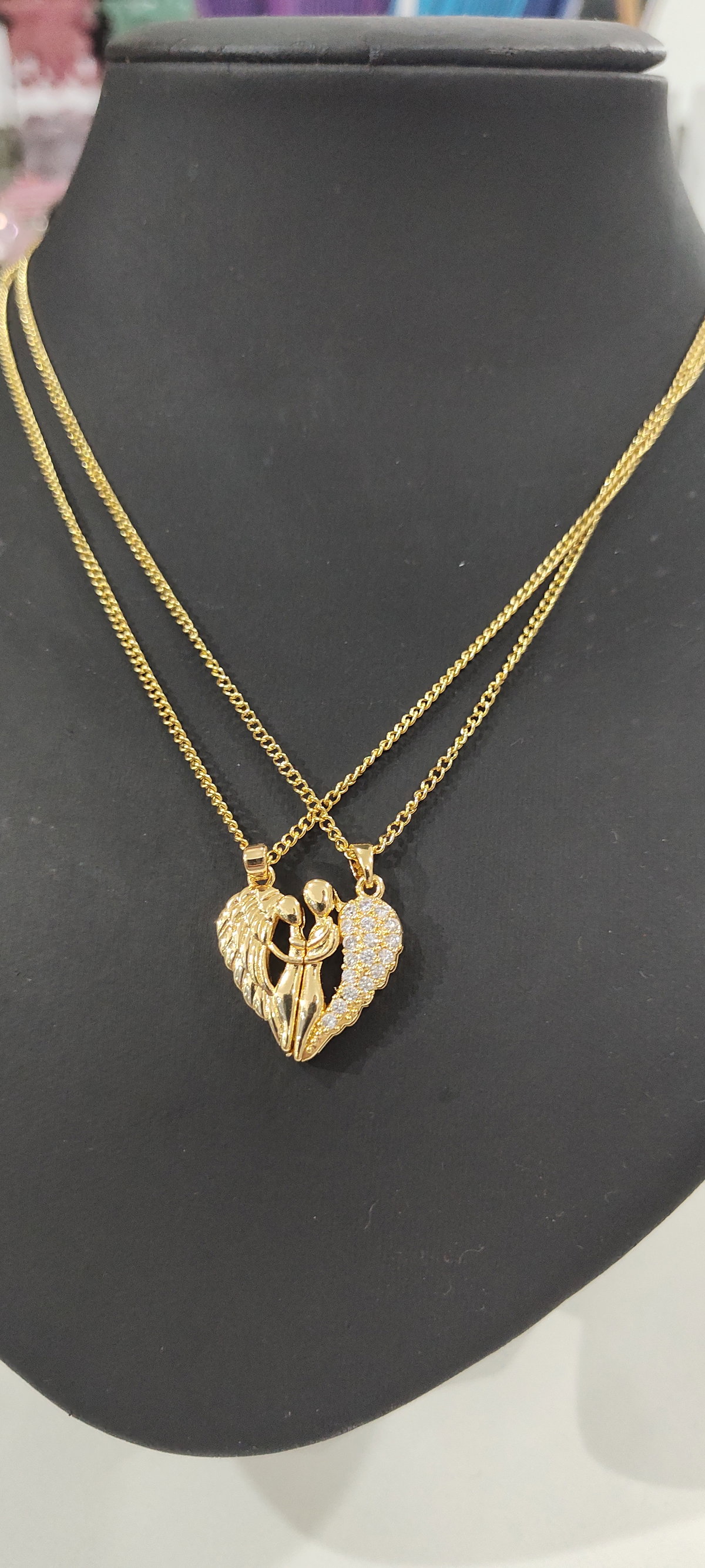 Captura la esencia del amor y la protección con este encantador collar dorado diseñado para compartir. Este dúo de collares no solo es un accesorio hermoso, sino un poderoso símbolo de la conexión irrompible entre dos personas: tú y esa persona especial.