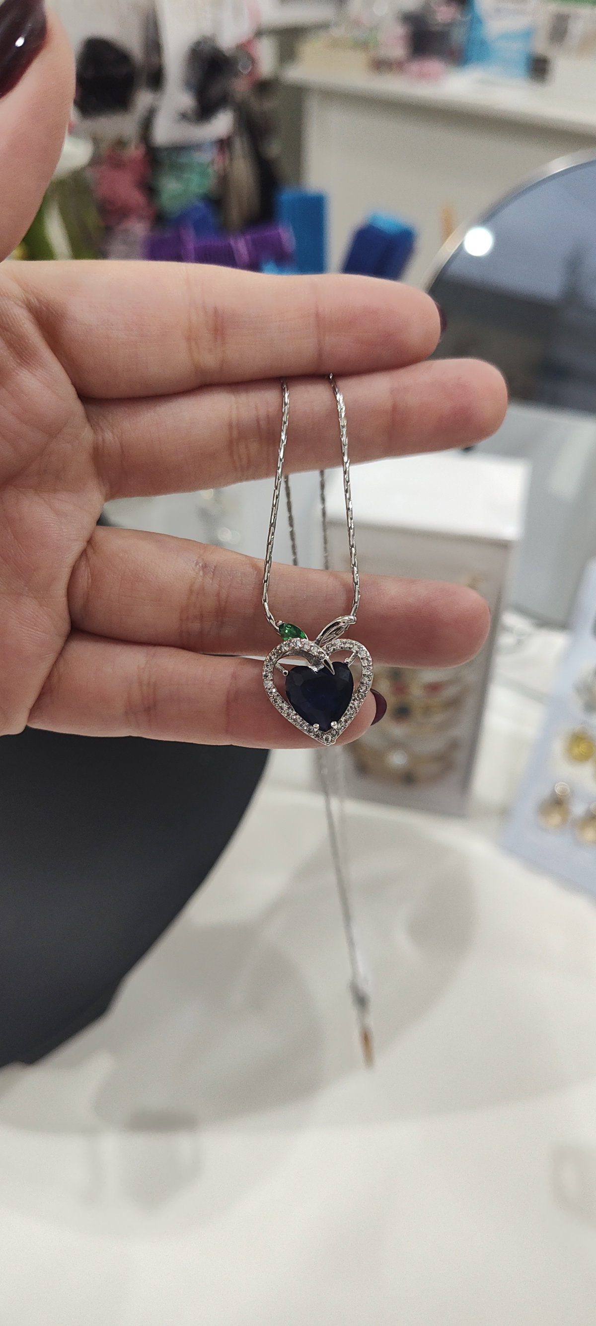 Un collar elegante y romántico, con dije en forma de corazón adornado con strass brillantes y una piedra central en tono azul profundo. En su interior, al proyectar luz (por ejemplo, con la linterna del celular), revela la frase “Te amo” en 100 idiomas. Un detalle único para regalar amor de una forma original y significativa. Ideal para aniversarios, San Valentín o simplemente para decir te elijo cada día.