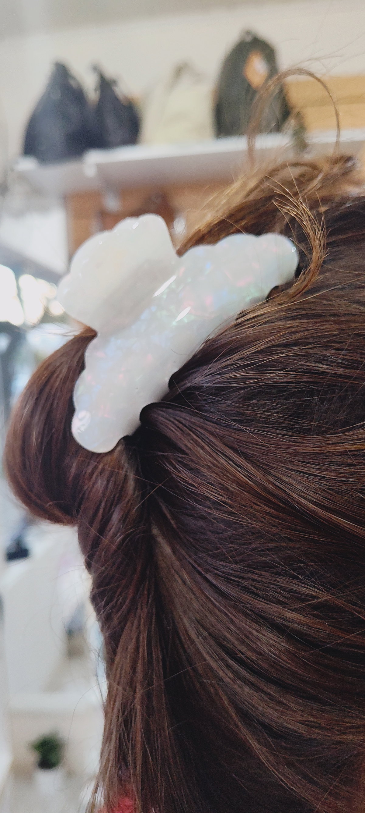 Captura la magia del amanecer con nuestras Pinzas para el Cabello Resina Blanco. Diseñada para deslumbrar, este accesorio es la fusión perfecta de funcionalidad y estilo etéreo. Su acabado iridiscente único refleja una paleta de colores cambiantes con cada movimiento, garantizando todas las miradas.