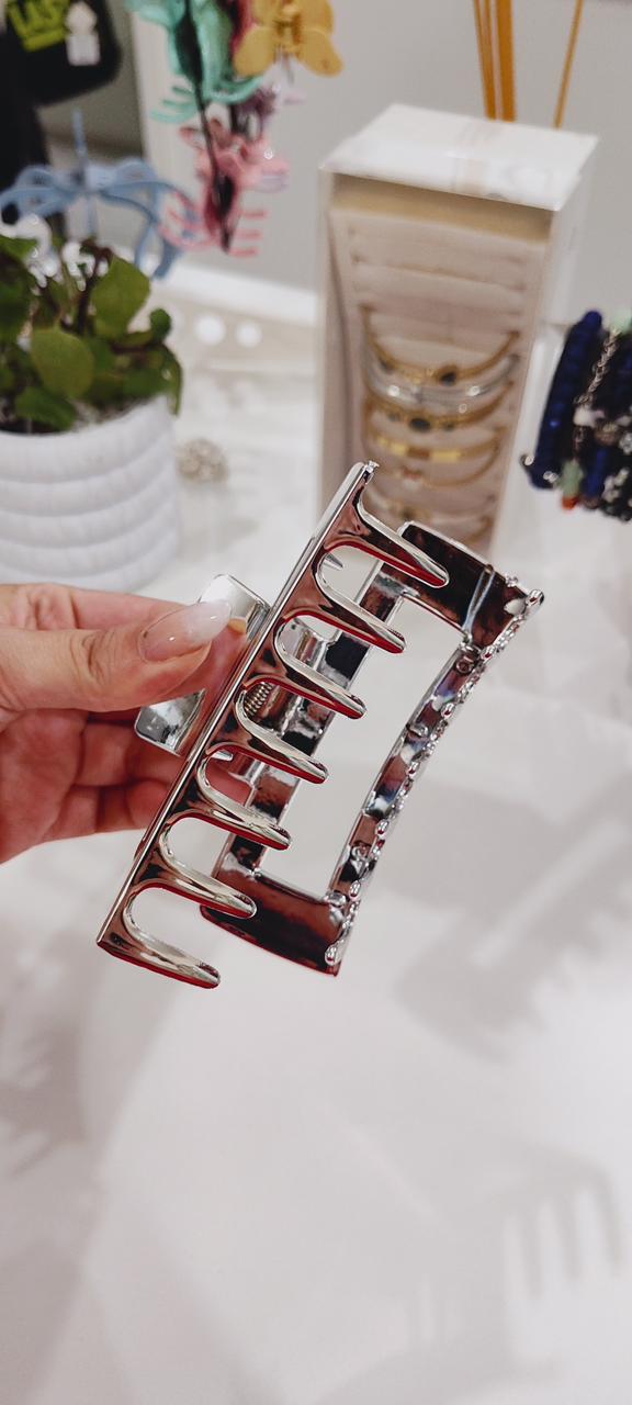 Captura la esencia del estilo contemporáneo con esta sofisticada pinza para el pelo. Su diseño minimalista y acabado metálico brillante la convierten en el accesorio perfecto para cualquier ocasión, desde un día de oficina hasta un evento nocturno.