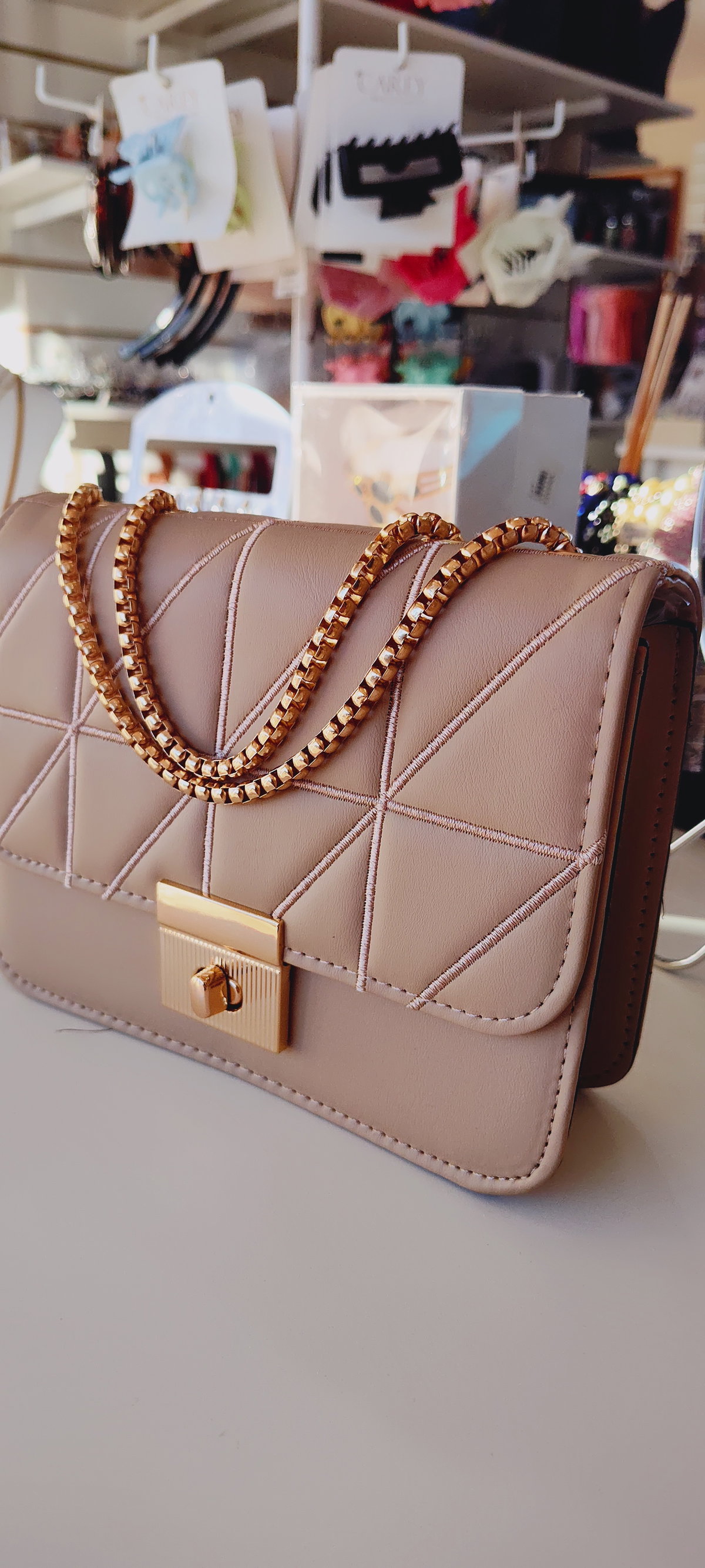 Eleva tu estilo con nuestra mini bag beige de hombro acolchada, una pieza esencial que combina sofisticación y funcionalidad. Con su diseño atemporal y acabado en un delicado tono beige, este accesorio es perfecto para complementar cualquier atuendo, desde un look casual hasta una noche especial.