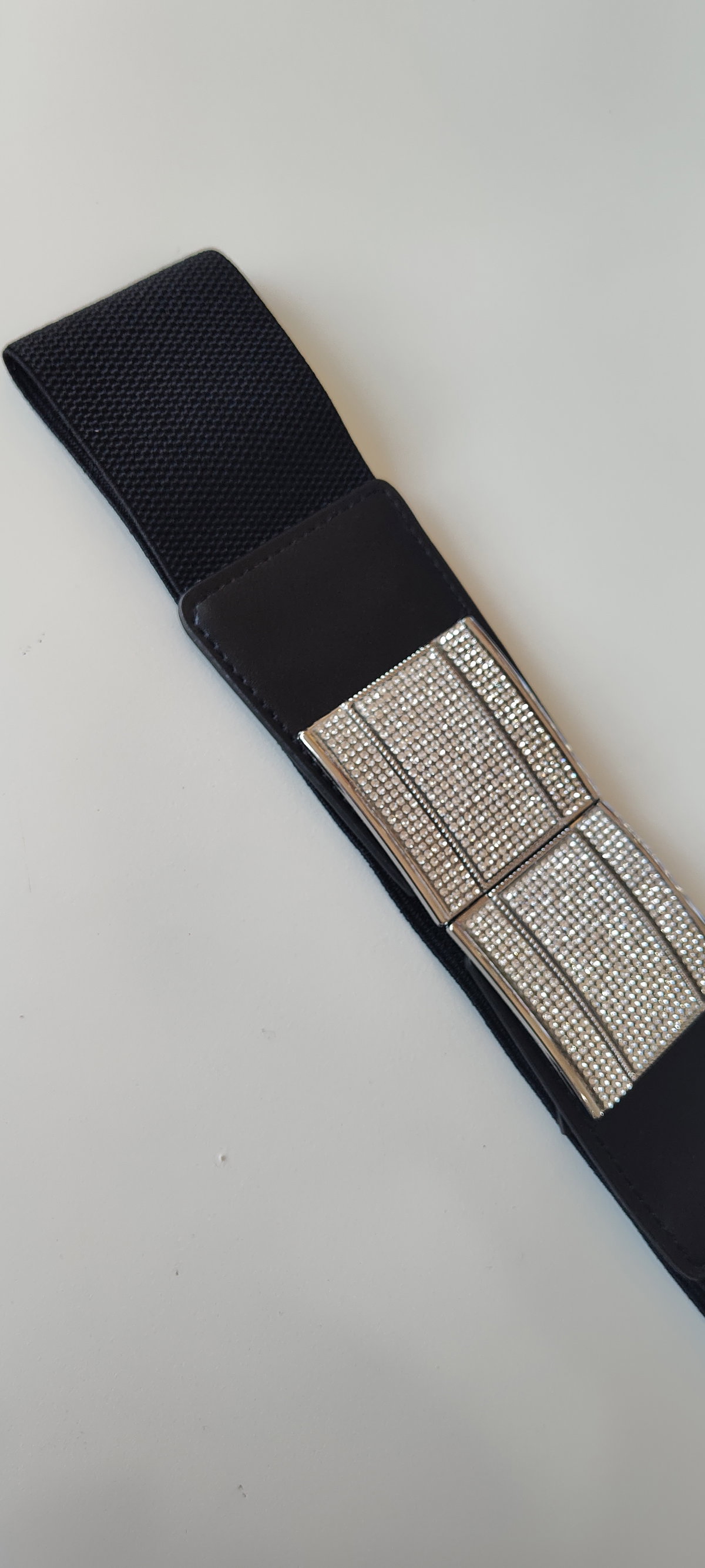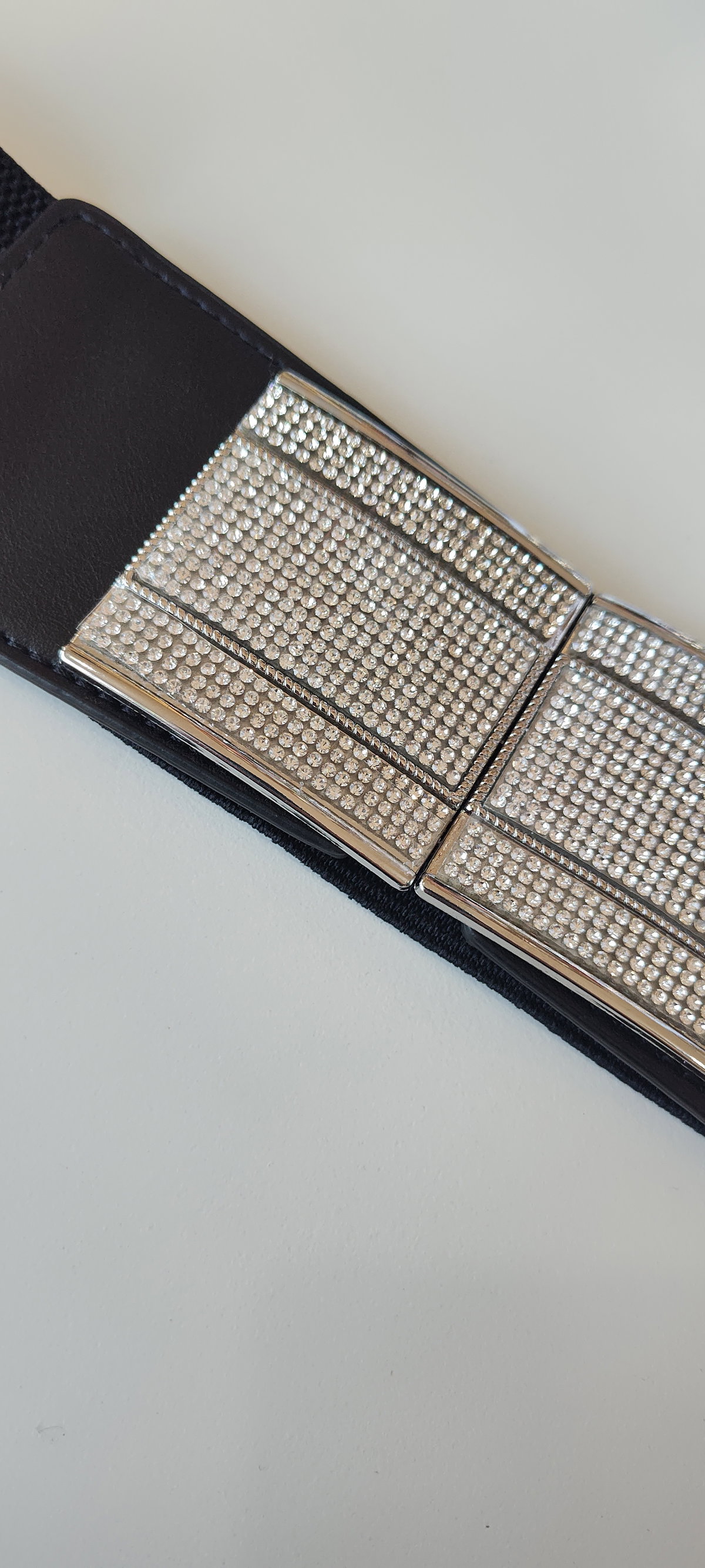 Cinto/faja elastizada con hebilla ancha y strass plateada