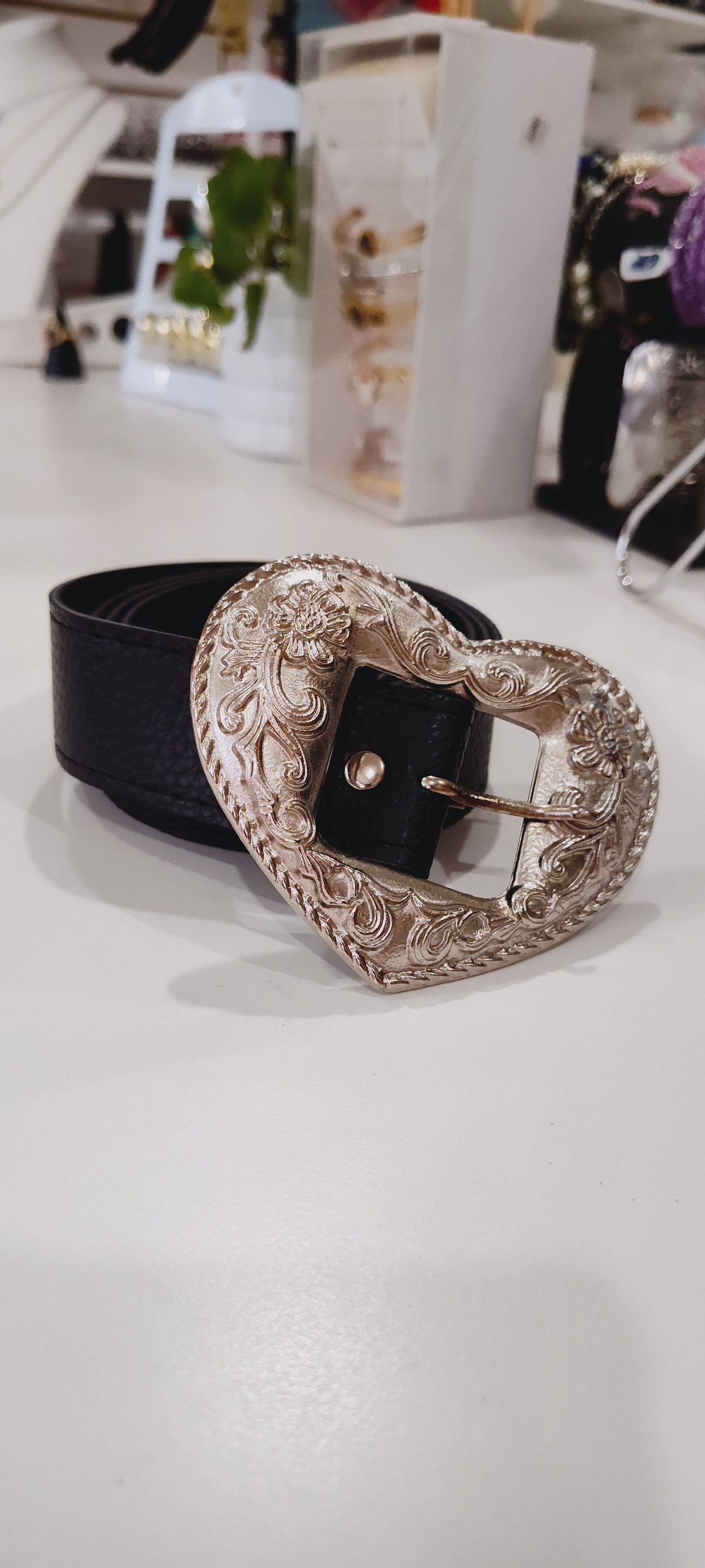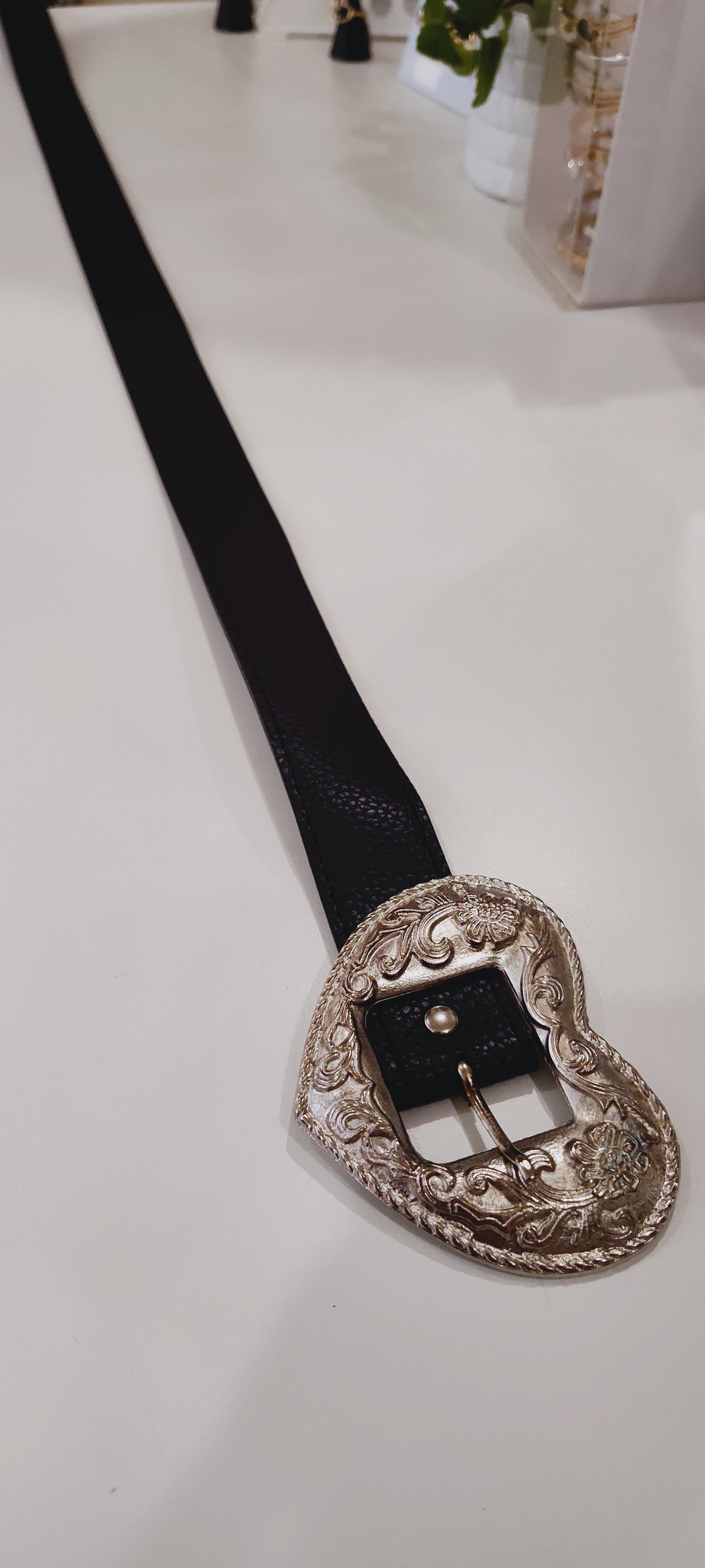 CINTO CHAPON CORAZON GRABADO NEGRO
