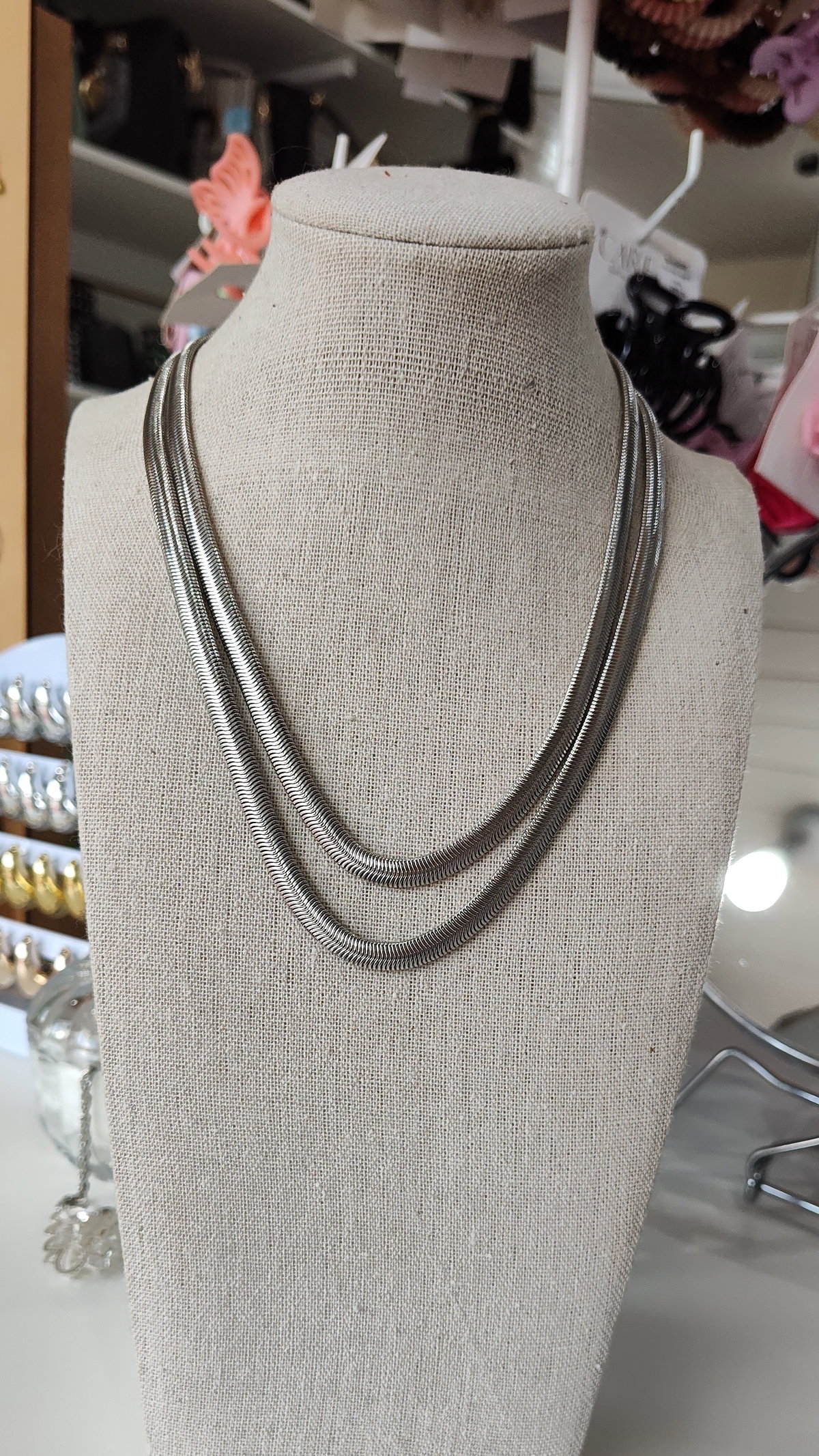 Eleva tu estilo con este deslumbrante collar de cadena serpiente plana. Este accesorio presenta un diseño versátil y moderno de múltiples capas que aporta un toque de sofisticación contemporánea a cualquier atuendo.
