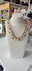 Este collar presenta un diseño audaz y moderno, fusionando la tendencia de las cadenas de eslabones gruesos (chunky) con la elegancia de los materiales combinados. Es ideal para un look impactante y a la moda.
