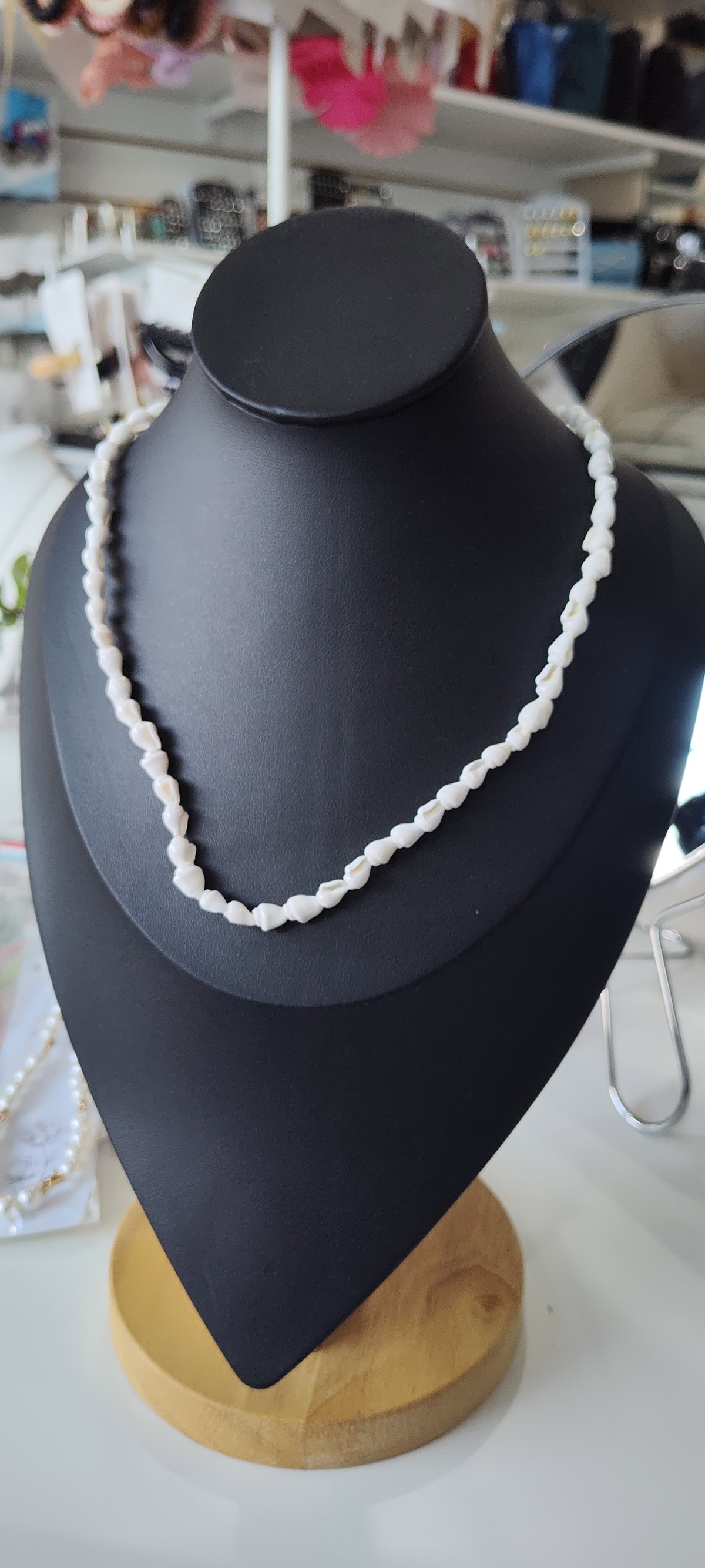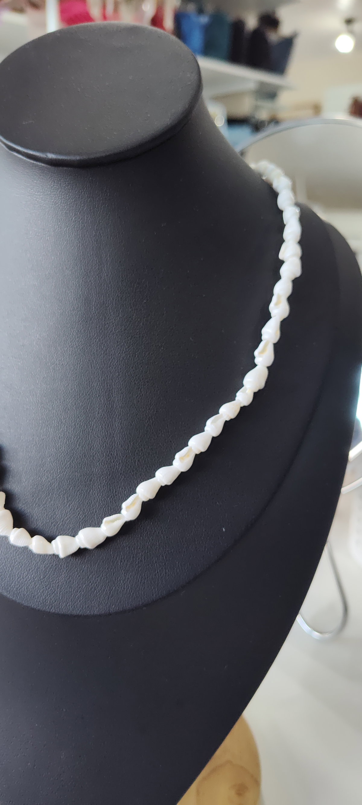 - Un diseño delicado y atemporal. Este collar está compuesto por pequeñas piezas de caracol en tonos beige naturales, creando un look fresco y minimalista. Ideal para combinar con outfits de verano o sumar un toque boho durante todo el año.