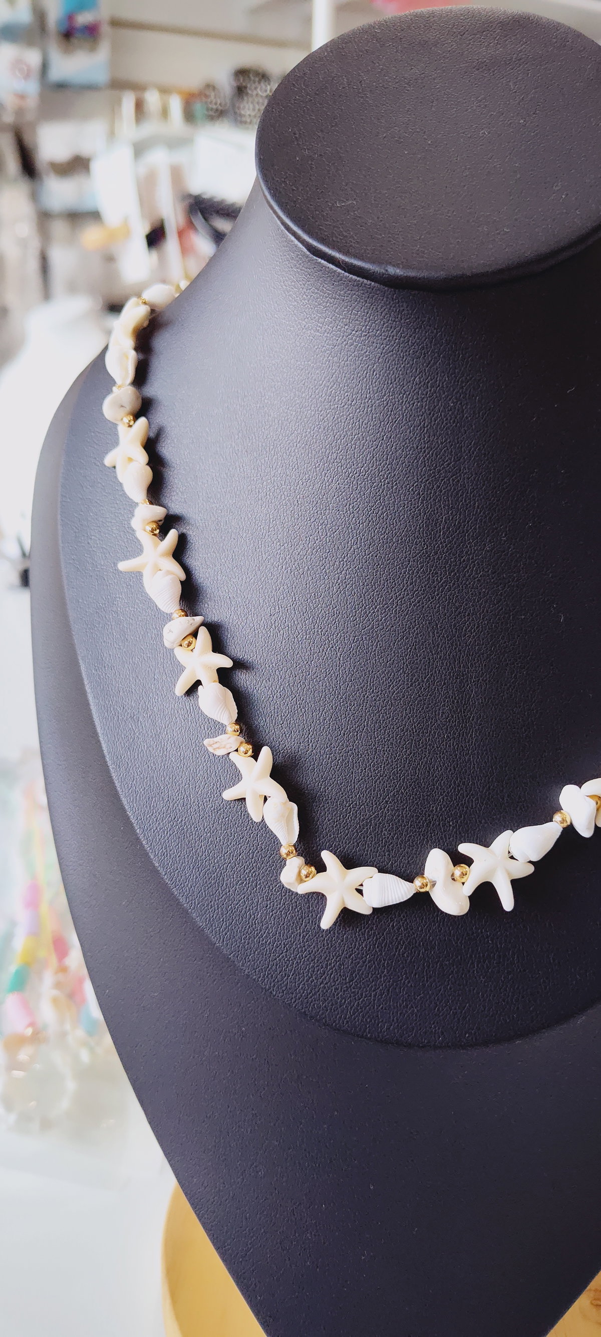 - Un modelo con detalles únicos: estrellas marinas y mini caracoles intercalados con cuentas doradas que aportan brillo sin perder la esencia playera. Perfecto para quienes buscan un accesorio femenino, elegante y con personalidad.