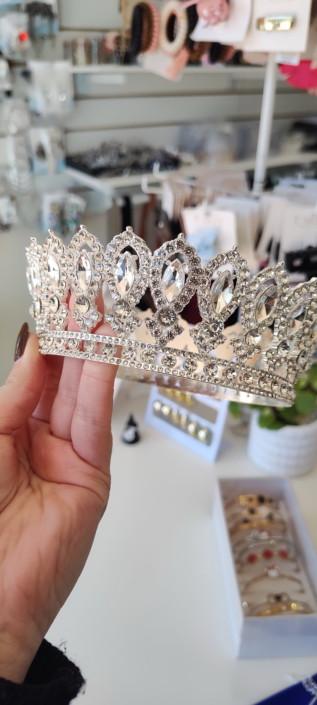 Elegante corona redonda en tono plateado con incrustaciones de cristales brillantes que capturan la luz desde todos los ángulos. Su diseño simétrico y delicado aporta un toque de distinción ideal para novias, cumpleaños, sesiones de fotos o eventos especiales.