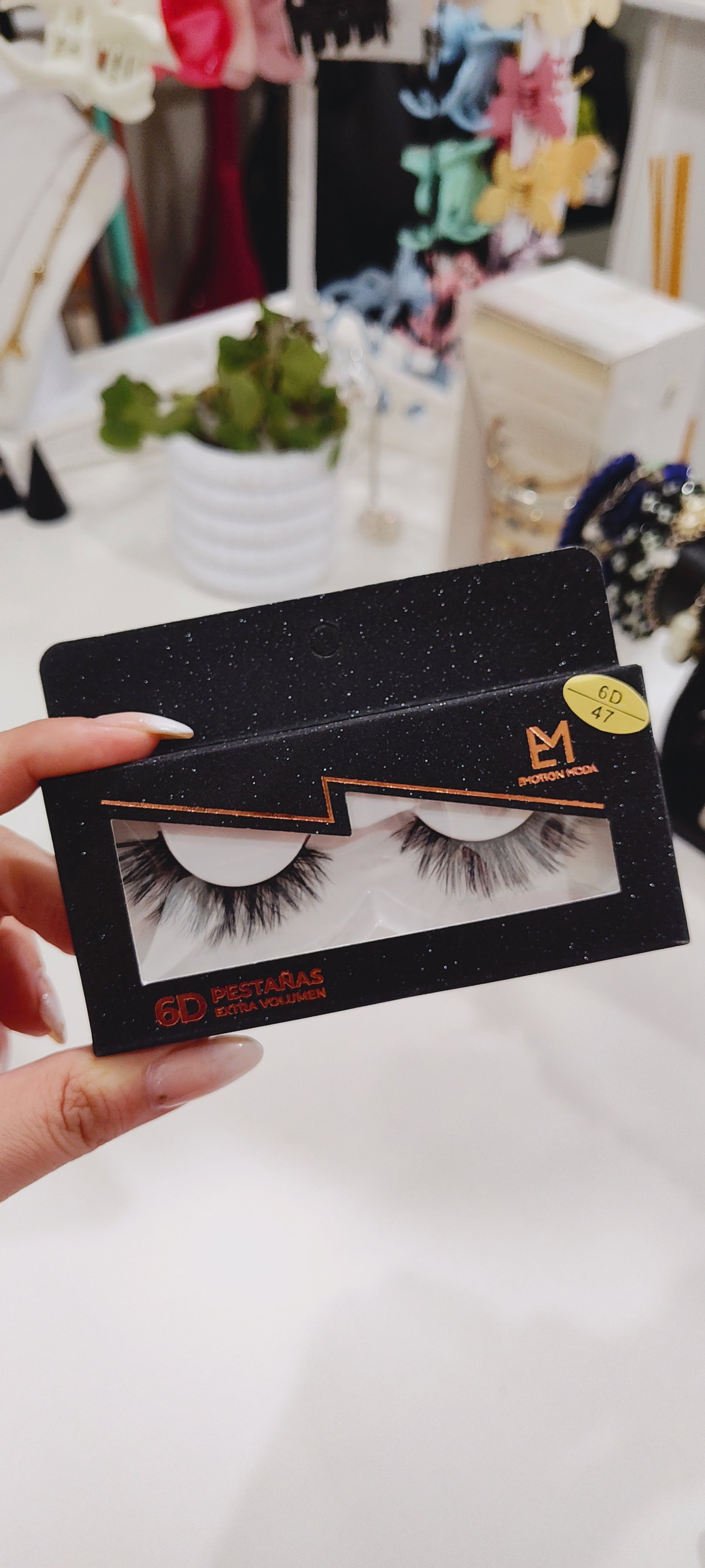 Estas pestañas postizas son de visón sintético (faux mink) y ofrecen un estilo de ojo de gato con mucho volumen.