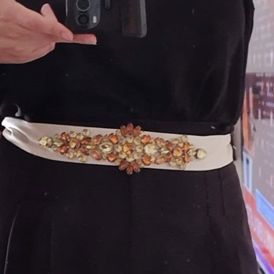 Combina este hermoso cinto de gemas engarzadas con un mono, un vestido, lo que quieras y "levanta" tu outfit.