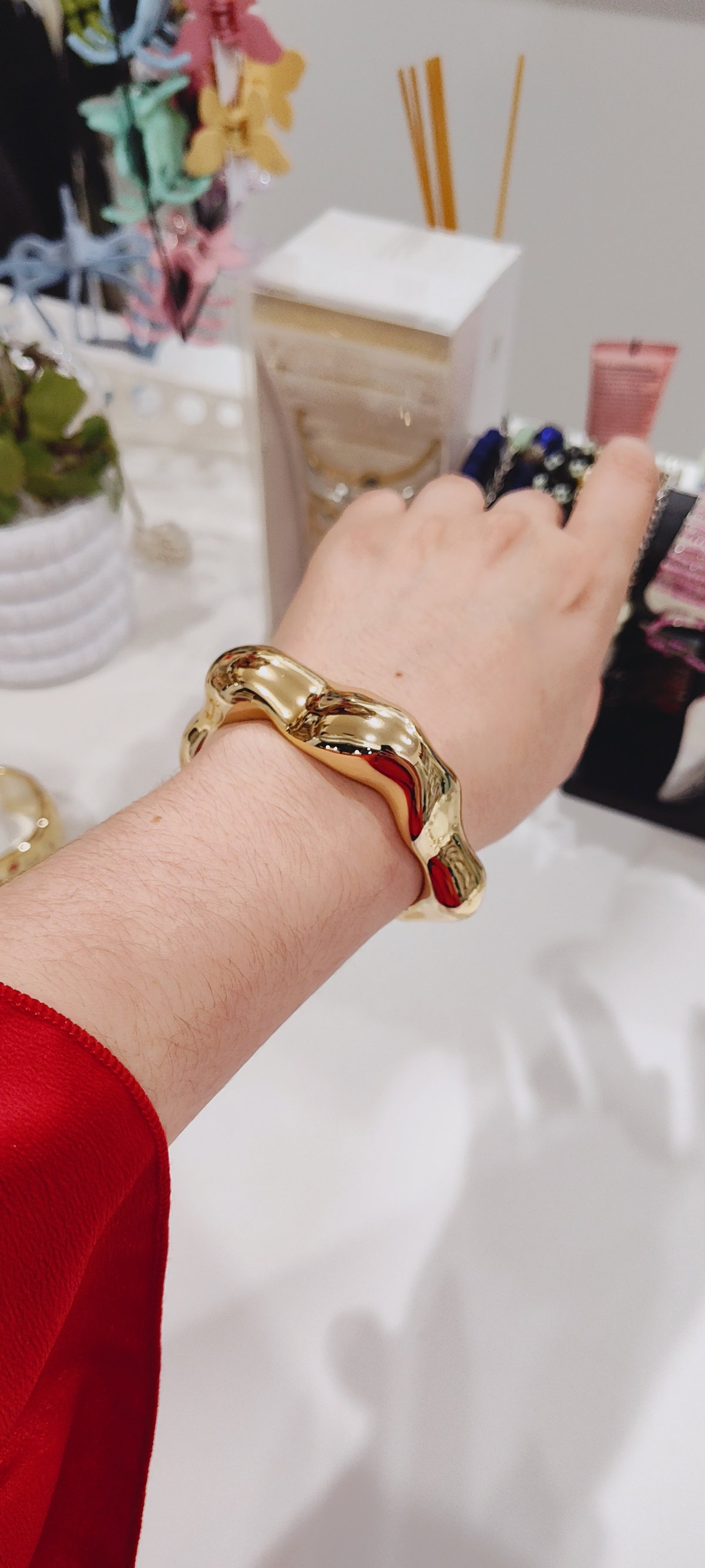 - Brazalete Ondina, brazalete abierto de forma orgánica y ondulada. Su silueta fluida aporta movimiento y un estilo artístico, perfecto para quienes buscan una pieza con carácter moderno.