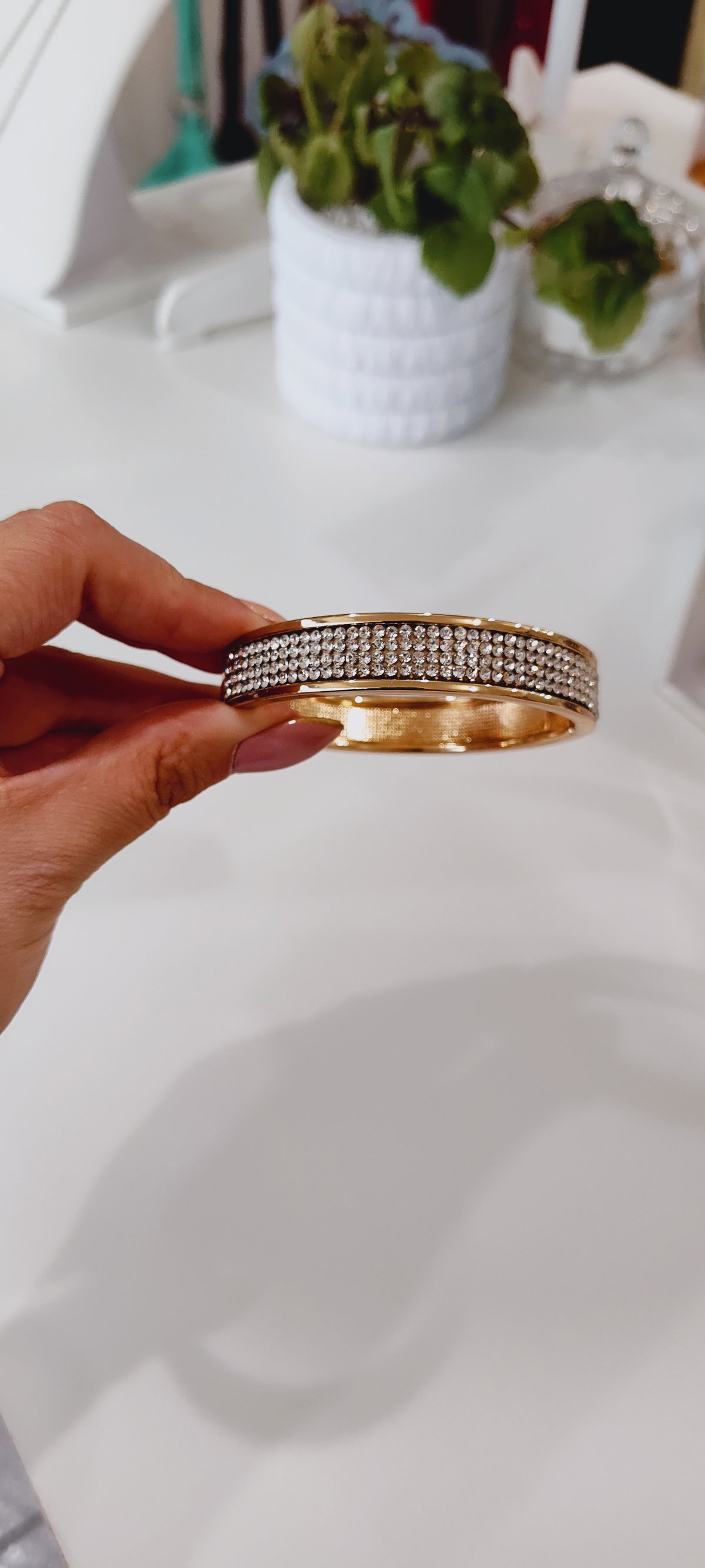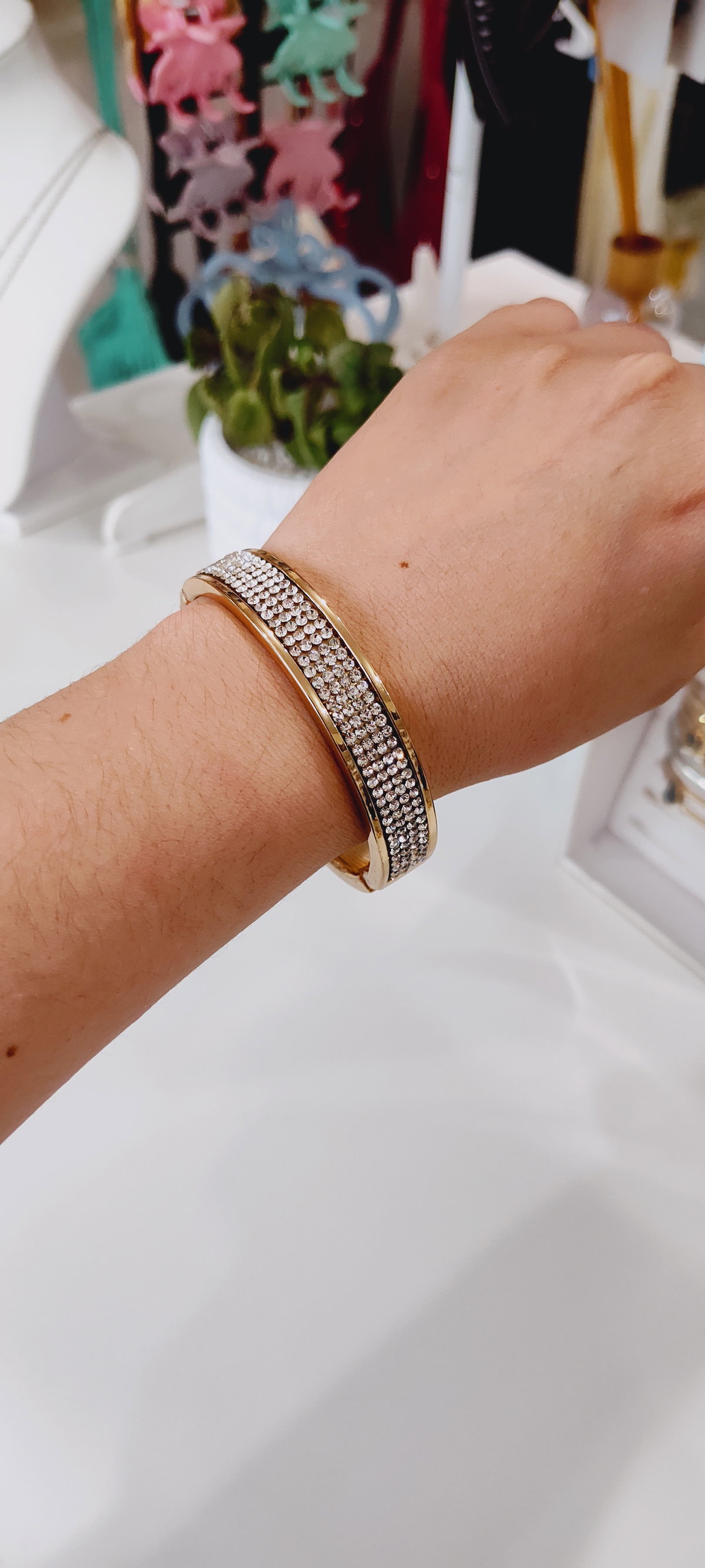 Un accesorio imprescindible que combina sofisticación y brillo. Este brazalete rígido de diseño atemporal es perfecto para añadir un toque de glamour a cualquier ocasión especial.
