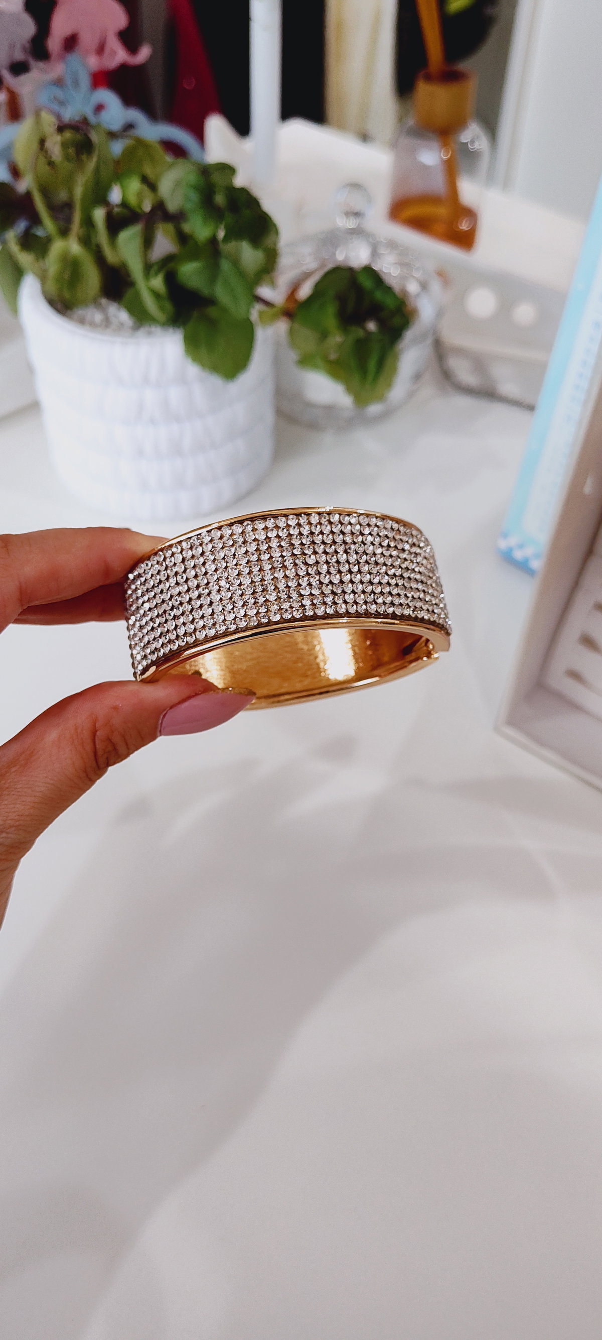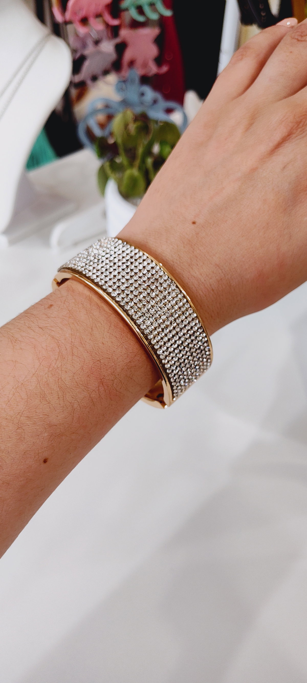 Destaca en cualquier evento con este deslumbrante brazalete tipo puño. Diseñado para añadir un toque de glamour y sofisticación, esta pieza ideal para fiestas, noches de gala y ocasiones formales.