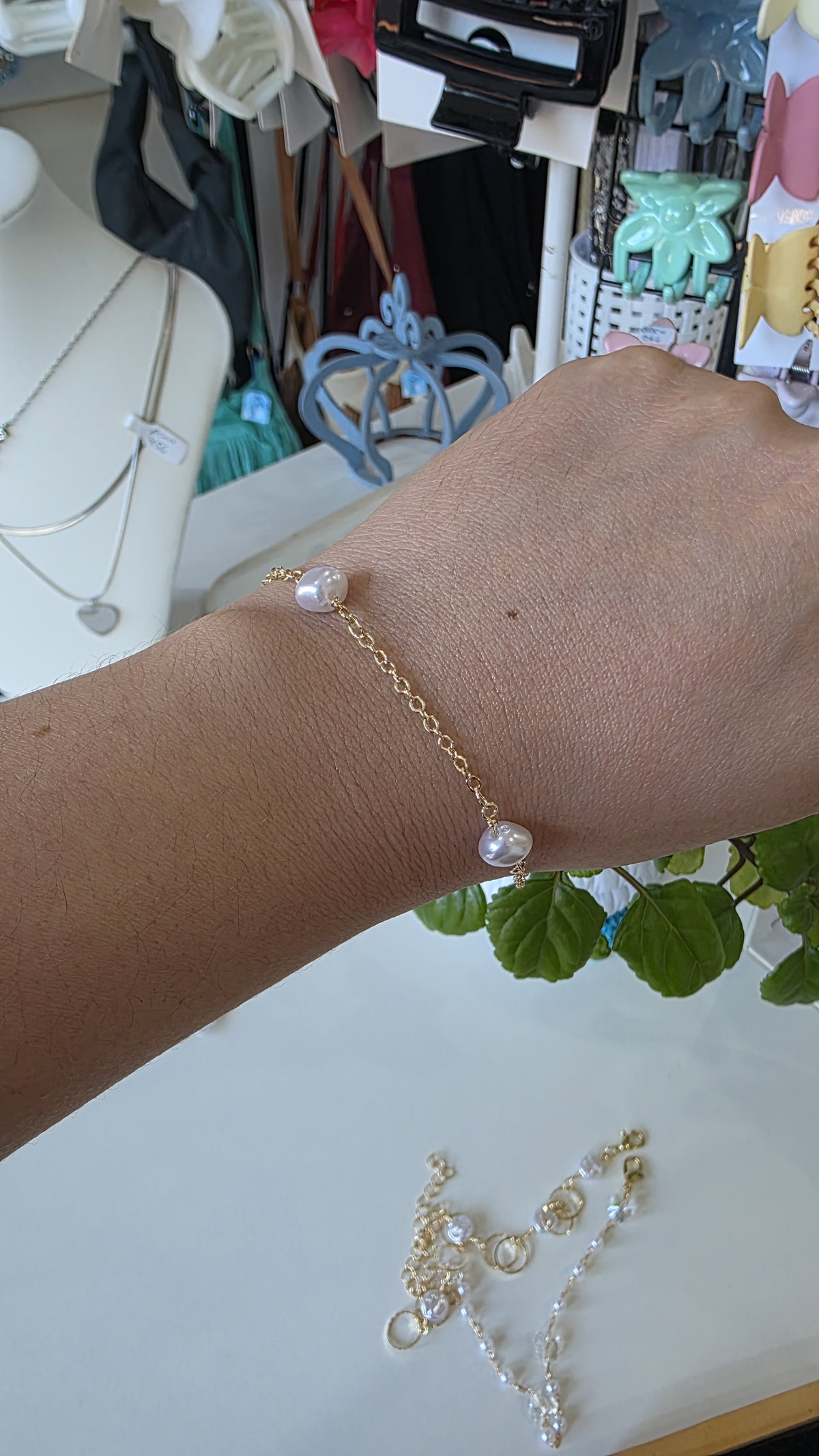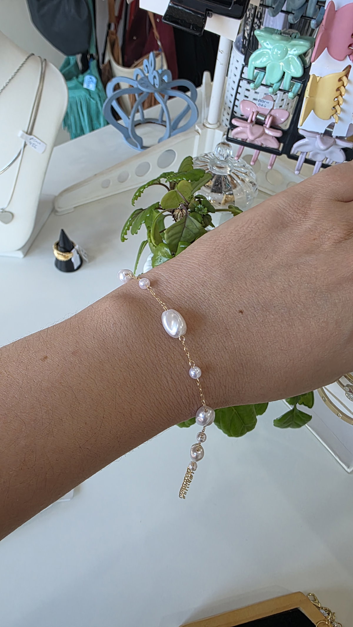 Pulsera delicada con perlas en forma de gota intercaladas. Sofisticada y liviana, ideal para usar sola o en conjunto.